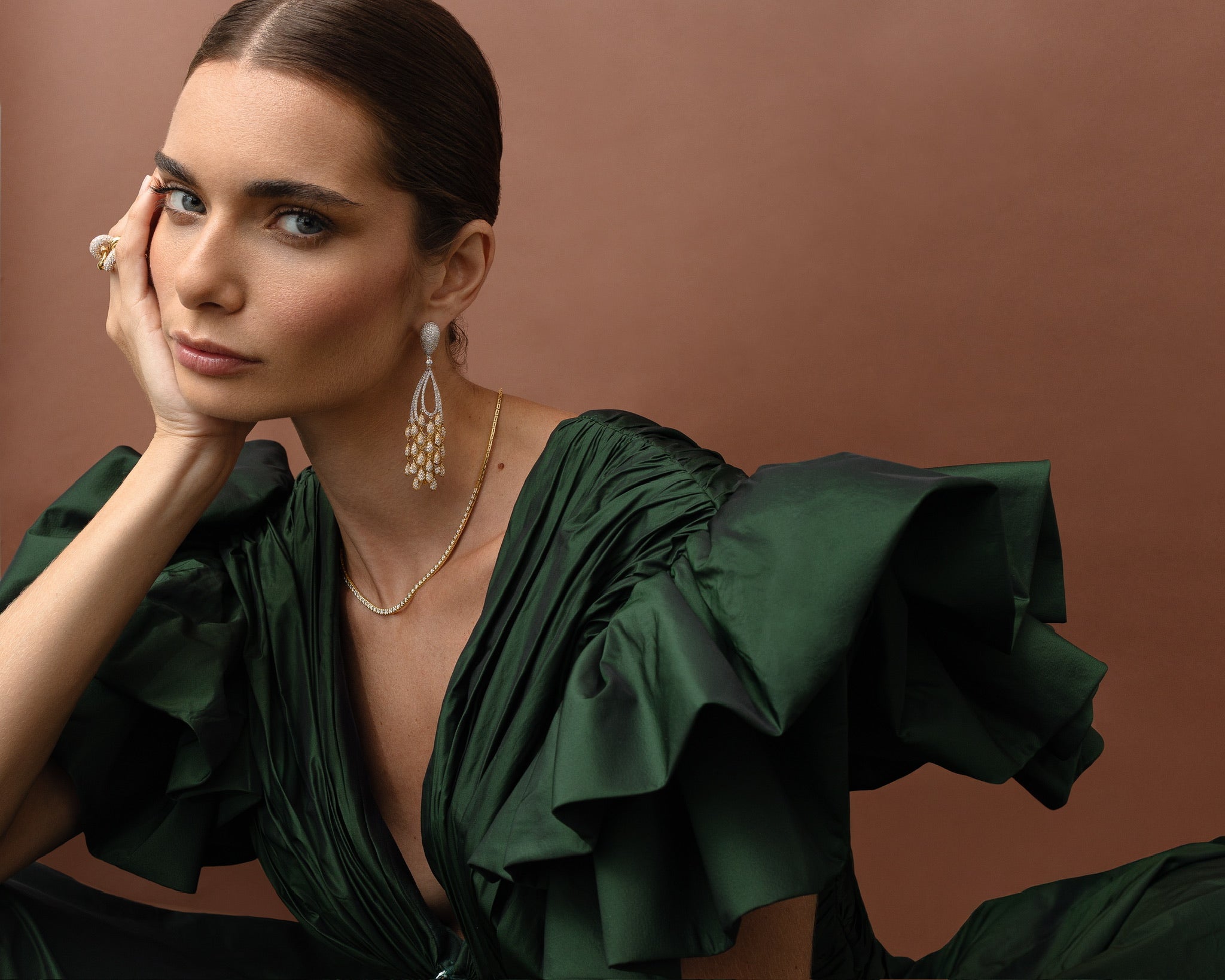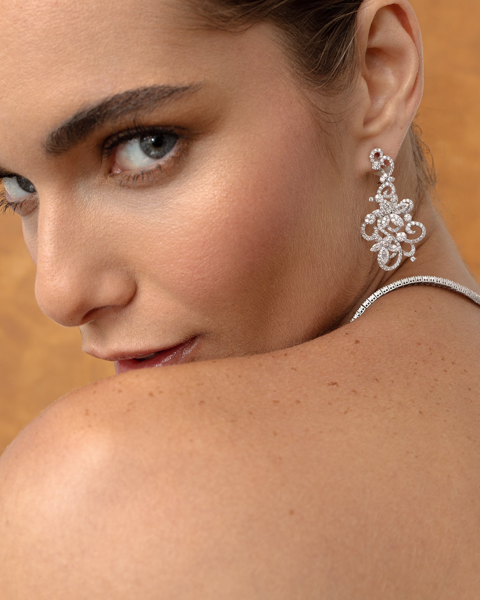LEAVES EMBROIDERED DIAMOND EARRINGS